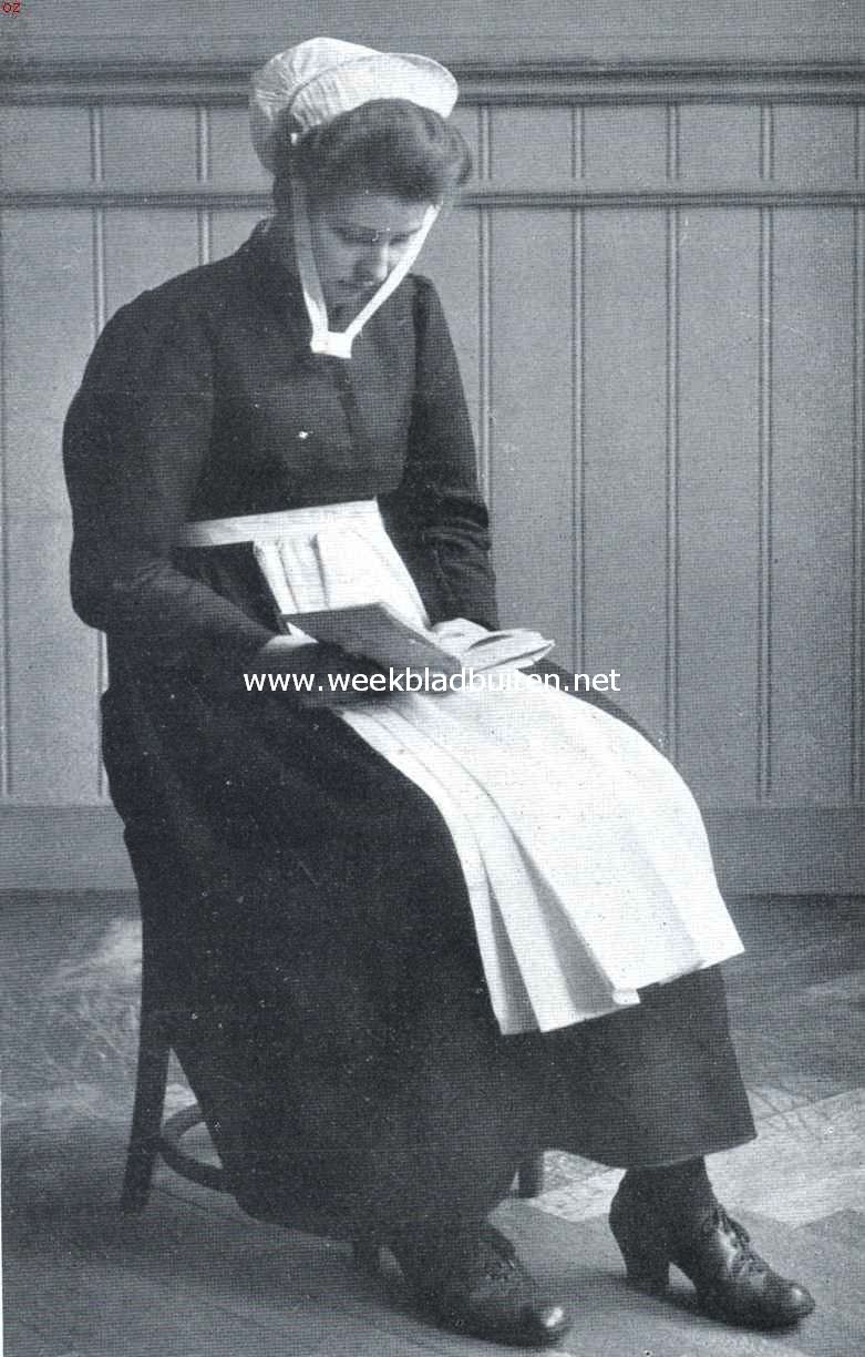 Bijschrift foto:  Meisje in de kleeding van het Evangelisch Luthersche Weeshuis (Zondagsche kleeding)