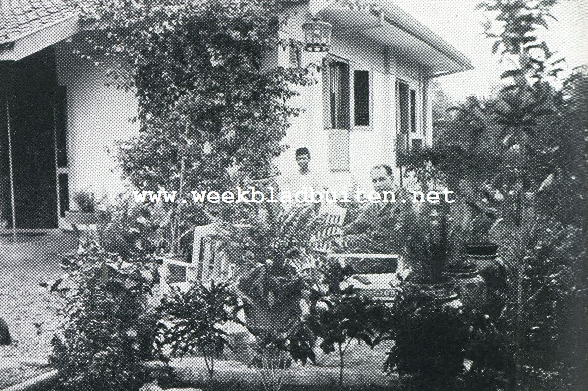 Bijschrift foto:  Het moderne Indische-huis. Een hoekje van den tuin