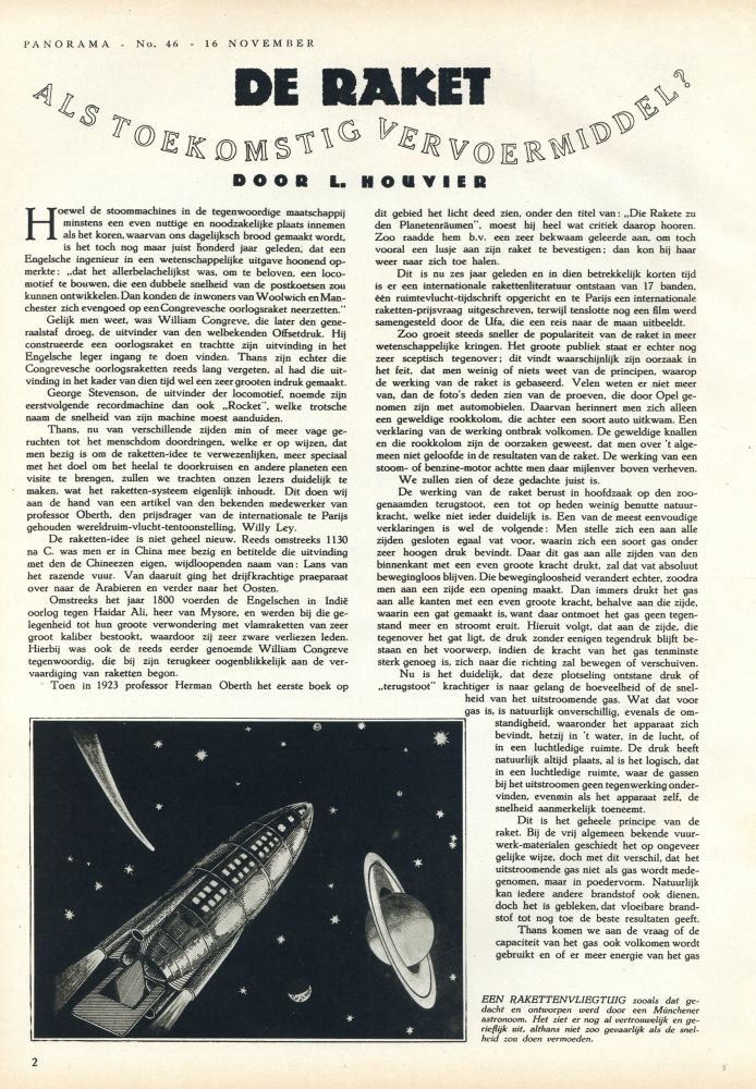De werking van de raket berust in hoofdzaak op den zoogenaamden terugstoot, een tot op heden weinig benutte natuurkracht, welke niet ieder duidelijk is. Een van de meest eenvoudige