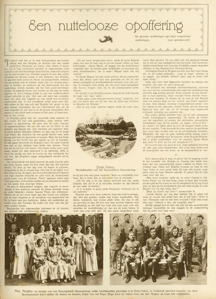 7Ars. Tmqley, de leidster van het ‘Theosophisch Genootschap, welks hoofdkwartier gevestigd is te point Coma, in Califomié (zie foto) bezocht ons land, Bovenstaande foto’s stellen de dames en heeren, leden van het ftaya yoga koor en orkest voor, die mrs. Tmgley op haar reis vergezellen.