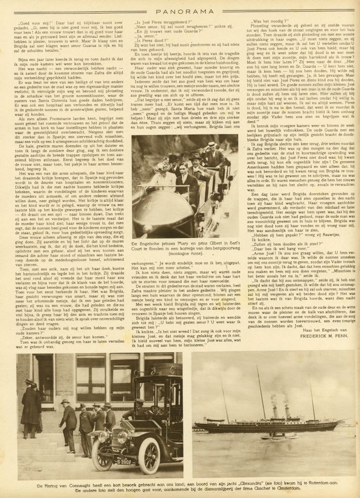 „Hij zal nooit terugkomen senor, zeide de arme Brigida tegen mij toen ik haar zag en groote tranen vielen op haar kantkussen. „Santa Maria, zij zeggen dat die Amerikanen vreeselijk zijn, zij kennen geen medelijden en sommige zijn zelfs menscheneters, het is waar ! Miguel heeft het mij verteld.”