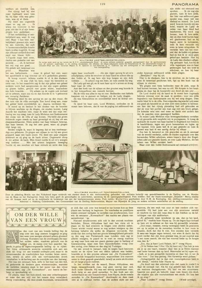 van dit knappe werk zal na de mobilisatie de huiskamer van een der landweermannen sieren. Foto rechts: Medailles geschonken door H. M. de Koninging, den stelling-commandant viceAdmiraal