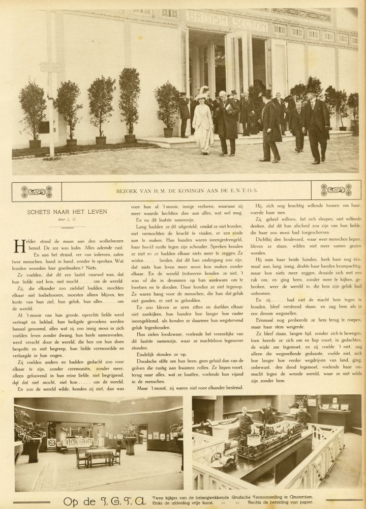 Twee kijkjes van de belangwekkende Grafische Tentoonstelling te Qmsterdam. Sinks de afdeeling vrije kunst, hechts de bereiding van papier.