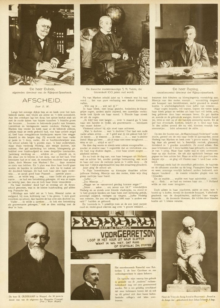 Ze bleef staan, langen tijd, zonder zich te bewegen, toen keerde ze zich om en liep voort, in gedachten, de wijde zee tegemoet, en zij voelde t niet, zag alleen die wegsnellende gedaante, voelde niet, zich hoe langer hoe verder wegdrijven van land, ging, onbewust, den dood tegemoet, voelende haar onmacht tegen de wreede wereld, waar ze niet wilde zijn zonder hem.