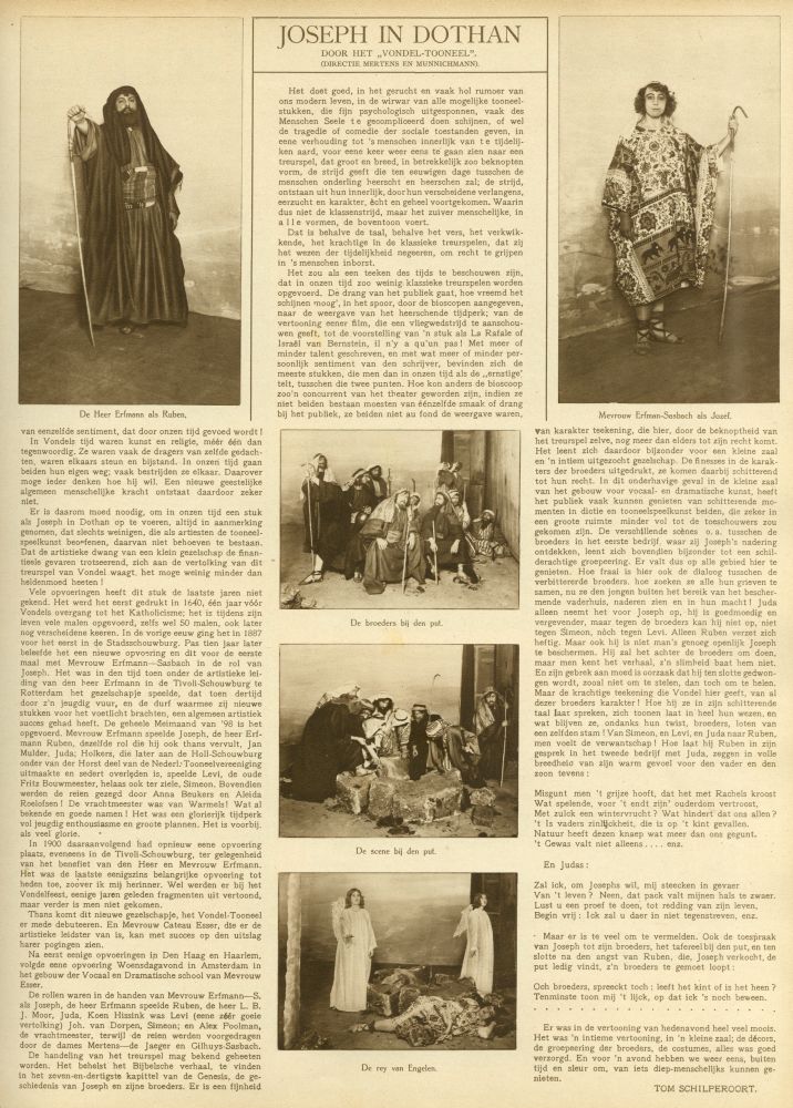 opgevoerd. Mevrouw Erfmann speelde Joseph, de heer Erfmann Ruben, dezelfde rol die hij ook thans vervult, Jan