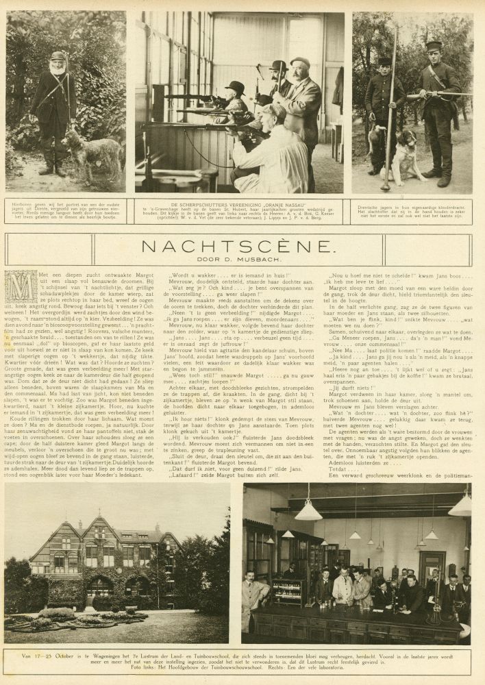 Een verward geschreeuw weerklonk en de politiemanVan 17 23 Ocfober is te Wageningen hef 7e Lustrum der Land- en Tuinbouwschool, die zich steeds in toenemenden bloei mag verheugen, herdacht. Vooral in de laatste jaren wordt