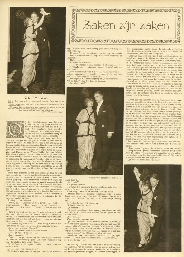 „Nee, meneer Durieu is ’t niet.... Hallo, met wien ? . . . Meneer Laarman, .... jawel .... moet U ’m zelf hebben ? . . . . Wat zegt U, ’n ongeluk . . . . ?