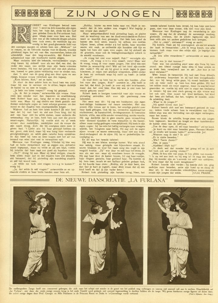 het hart in haar keel sloeg Moederzorg de soms halsbrekende toeren harer kinderen gade, en al had zij misschien