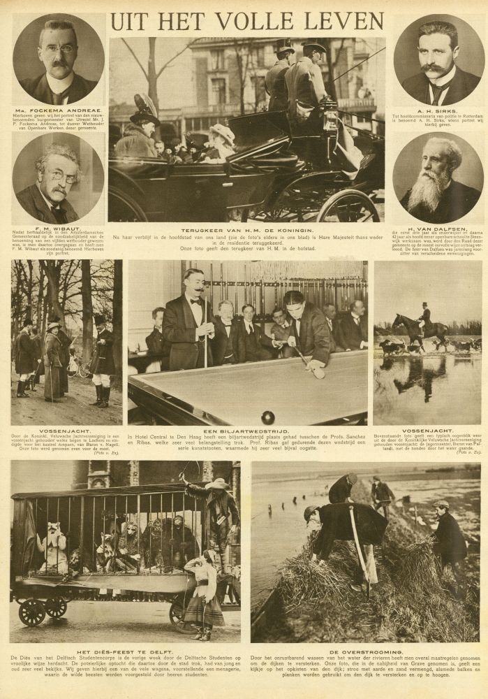 Ter gelegenheid van het 75-iarig bestaan van deze manége is een groot ruiterfeest georganiseerd, waaraan ongeveer 100 dames- en heerenleden hebben deelgenomen. Het ruiterfeest stelde een pantomime voor, spelende in EngelschInaië, getiteld „Des Radjah’s wraak of de vermetele minnaar”. Op bovenstaande foto ziet men de dames- en heerenkozakken in hun fraaie uniformen, na afloop van de manoeuvre.