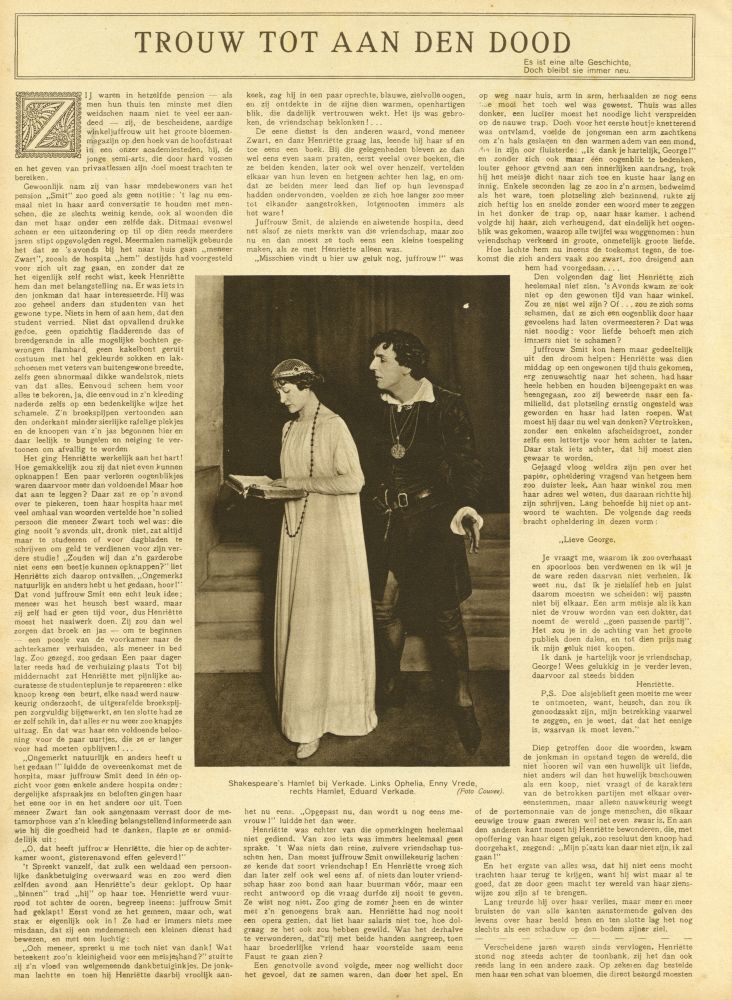 „binnen” trad „hij” op haar toe. Henriëtte werd vuurrood tot achter de ooren, begreep ineens: juffrouw Smit
