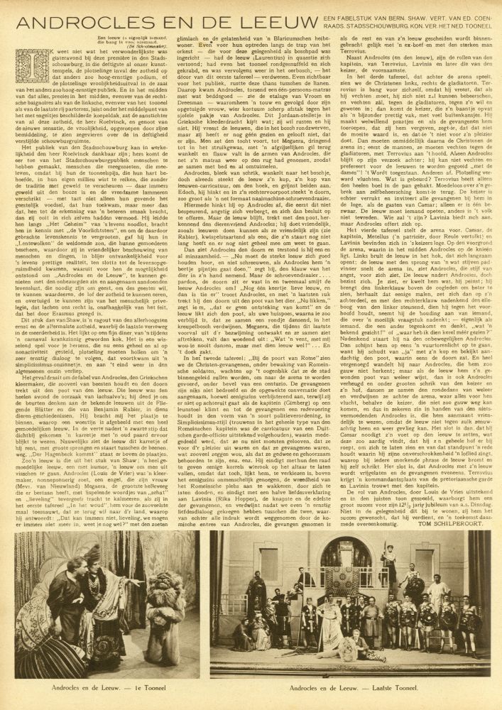 ANDROCLES EN DE LEEUW EEN FABELSTUK VAN BERN. SHAW. VERT. VAN ED. COENRAADS. STADSSCHOUWBURG. KON. VER. HET NED TOONEEL