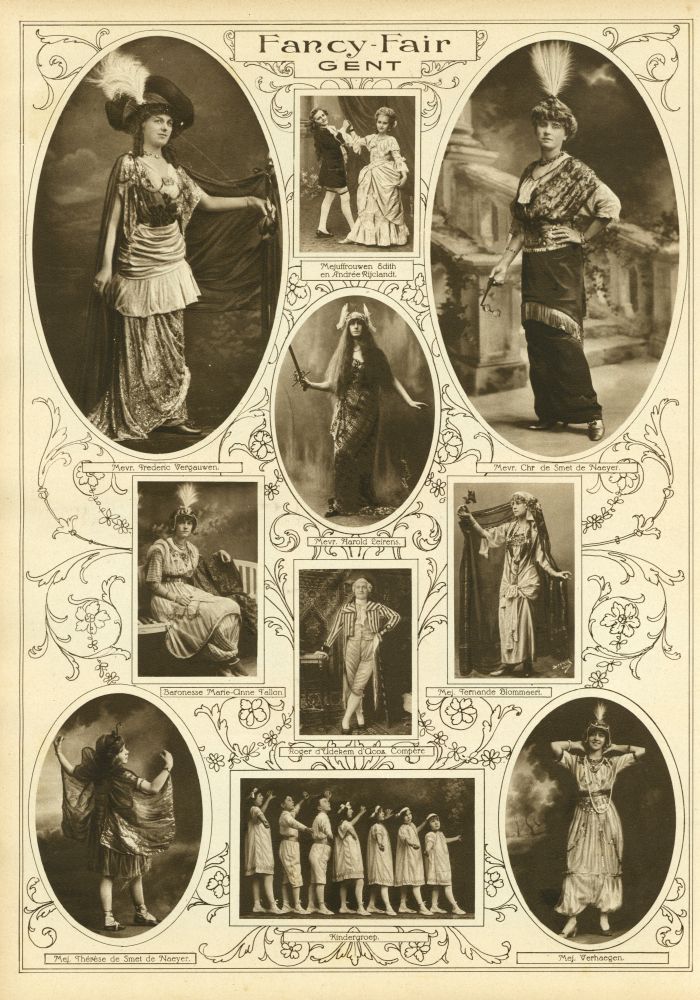 opgetuigde vrouw, wier kostuum scherp afstak tegen het