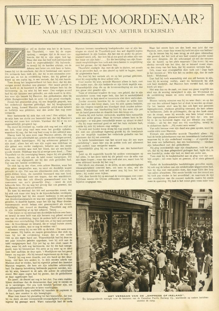 zal, wiè de moordenaar was. Wedden ?. . . . Om den prijs
