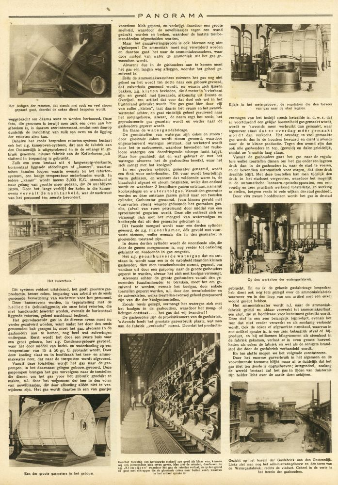 wij een interessante kiek ervan geven. Men ziet de retorten, daarboven de