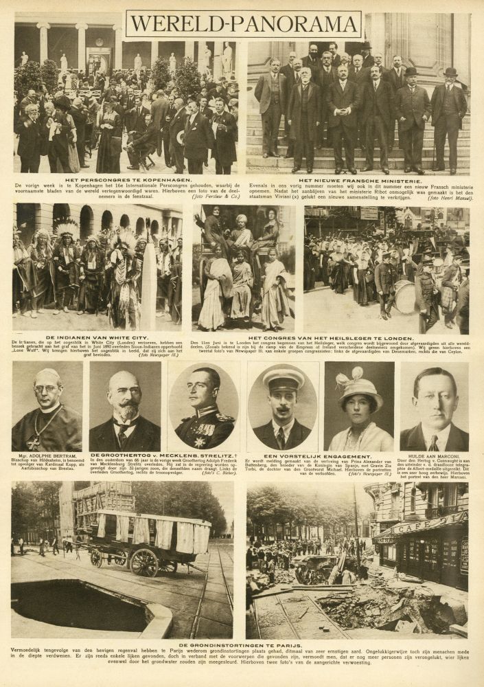 Jo Tourniaire voorgesteld, die op de renwagens, tusschen groepen soldaten te paard