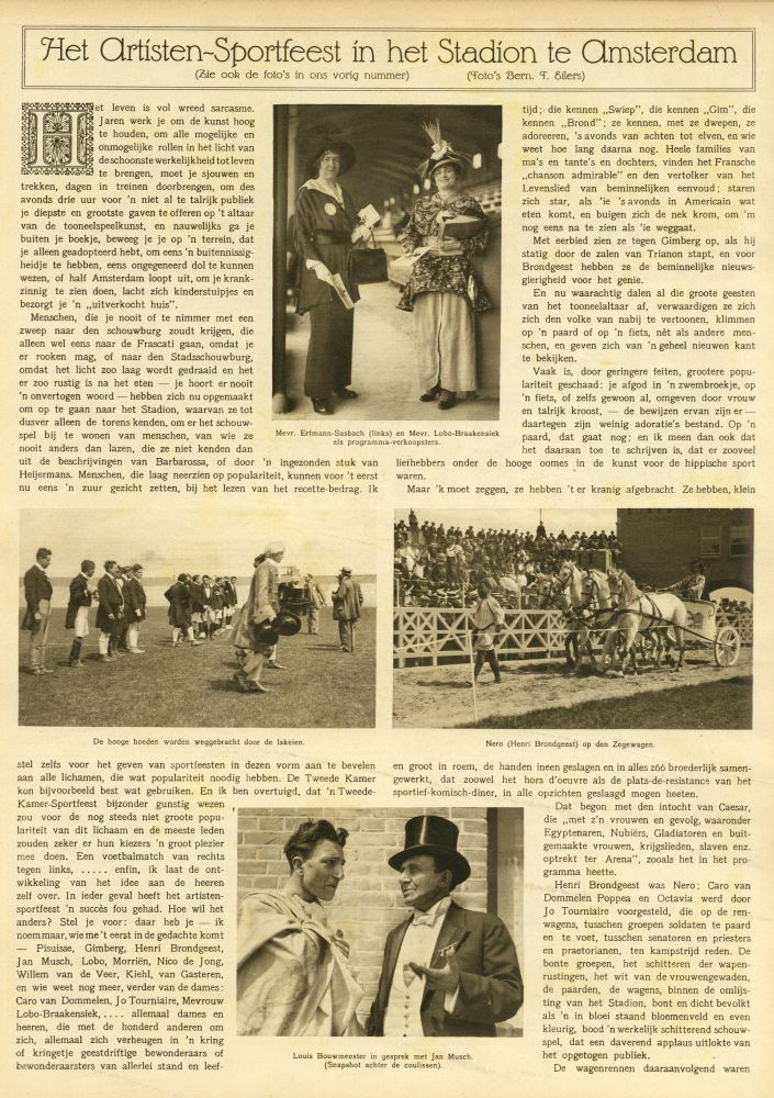 zelf over. In ieder geval heeft het artistensportfeest ’n succès fou gehad. Hoe wil het