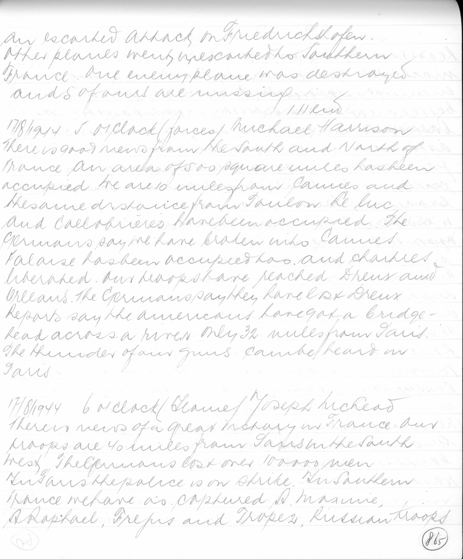 17/8/1944 5 o'clock (forces) Michael Harrison
