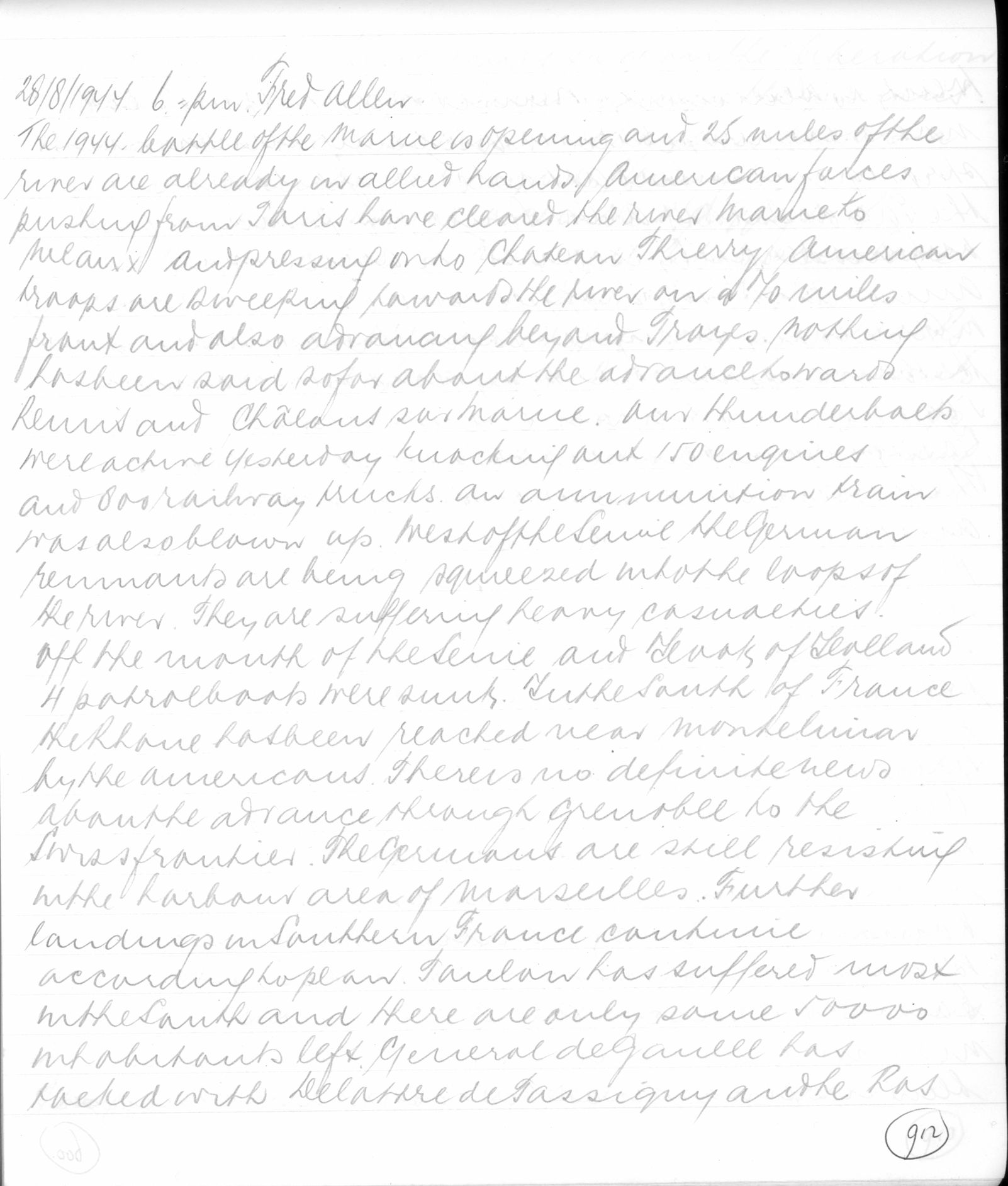 28/8/1944. 6.= pm. Fred. Allen