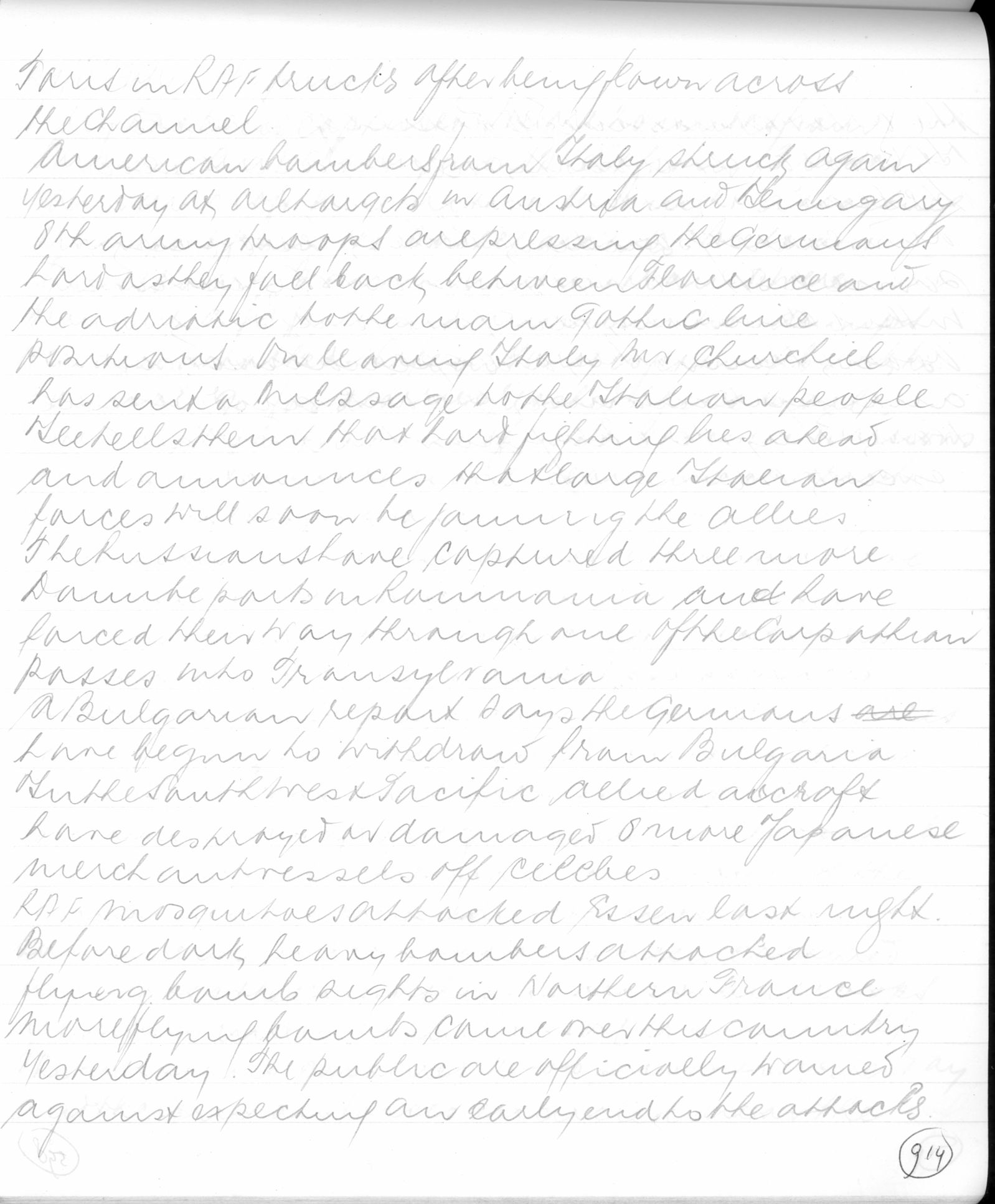 RAF Mosquitoes attacked Essen last night.